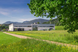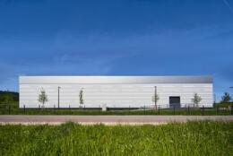 Neubau von Werk 4 mit Produktionshallen sowie Lager-, Werkstatt- und Verwaltungsflächen als 1. Bauabschnitt. Das Werk vereint in seiner Gestalt den Produktionsprozess, das Erscheinungsbild des Bauherrn und seine Umgebung im Voralpenland.