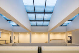 Rückbau und Sanierung der Dachflächen über dem 2. und 3. Obergeschoss, Neuerrichtung des Oberlichtes über dem zentralen Lichthof, Rückbau und Neuerrichtung der vorgehängten Fassaden im Penthouse 3. OG.