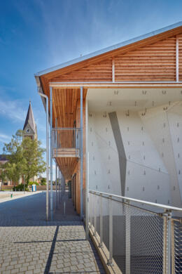 Gemeinschaftliche Nutzung als Gemeindeverwaltung, Bibliothek, Jugendzentrum, Vereinsgebäude mit Probesaal für die Musikkapelle und Integration einer Kletteranlage.
