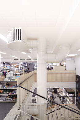 Zur Erweiterung der Verkaufsfläche und zur Aufwertung des Einkaufserlebnisses wurde der bestehende Überbau um ein Geschoss aufgestockt.