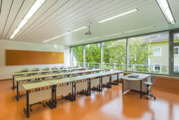 Generalsanierung des Schulgebäudes aus den 1970er Jahren, insbesondere mit Brandschutzmassnahmen, Energieoptimierung und Neuerrichtung der Hülle, funktionaler Restrukturierung, Sanierung des Ausbaus und Aussenanlagen.