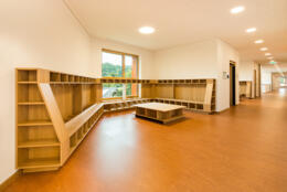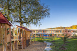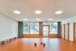 Neuerrichtung des Kindergartens auf der bestehenden Parzelle mit fünf Gruppen und Hortbetreuung. Abbruch des Bestandsgebäudes nach Umzug in den Neubau und Neuerstellung der umliegenden Freiflächen.