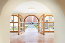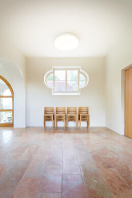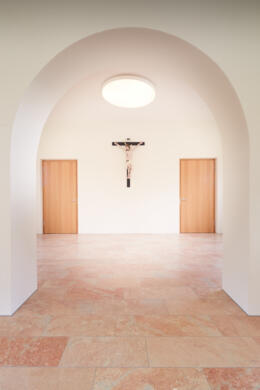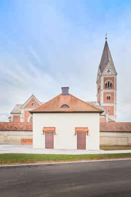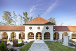 Sanierung, Reorganisation und Neugestaltung der denkmalgeschützten Aussegnungshalle am Friedhof in Fridolfing.