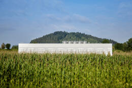 Neubau von Werk 4 mit Produktionshallen sowie Lager-, Werkstatt- und Verwaltungsflächen als 1. Bauabschnitt. Das Werk vereint in seiner Gestalt den Produktionsprozess, das Erscheinungsbild des Bauherrn und seine Umgebung im Voralpenland.